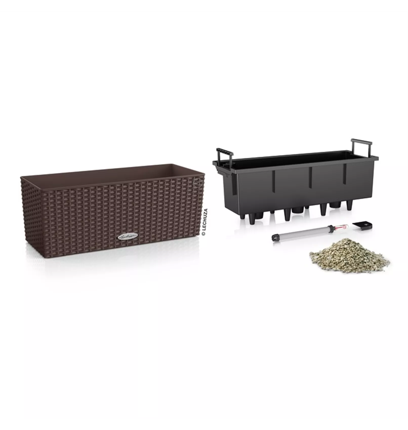 LECHUZA BALCONERA Cottage 50 ist mit einem stabilen und patentierten Tragegriff versehen. So können Blumen- und Pflanzenfreunde ihre Pflanzenbequem in die Erde setzen und den Einsatz im Anschluss einfach in das Gefäß stellen. Bei drohendem Unwetter lässt sich der Einsatz außerdem schnell herausnehmen, ohne dafür den ganzen Blumenkasten zu entfernen.