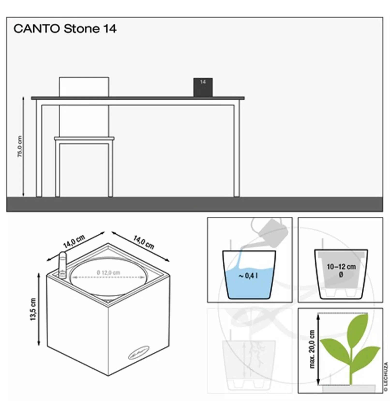 Wer klare Linien schätzt, wird CANTO Stone lieben. Die raue Natursteinoptik in drei Farbtönen bildet einen wunderbaren Kontrast zu sattem Grün und bunten Blüten. Dank gleicher Abmessungen kann der CANTO Pflanzeinsatz zwischen den beiden Modellen Würfel und Säule problemlos getauscht werden. CANTO Stone ist Gewinner des Red Dot Awards 2017, spiegelt Kernelemente zeitgemäßer Architektur wider und setzt Pflanzen attraktiv in Szene.