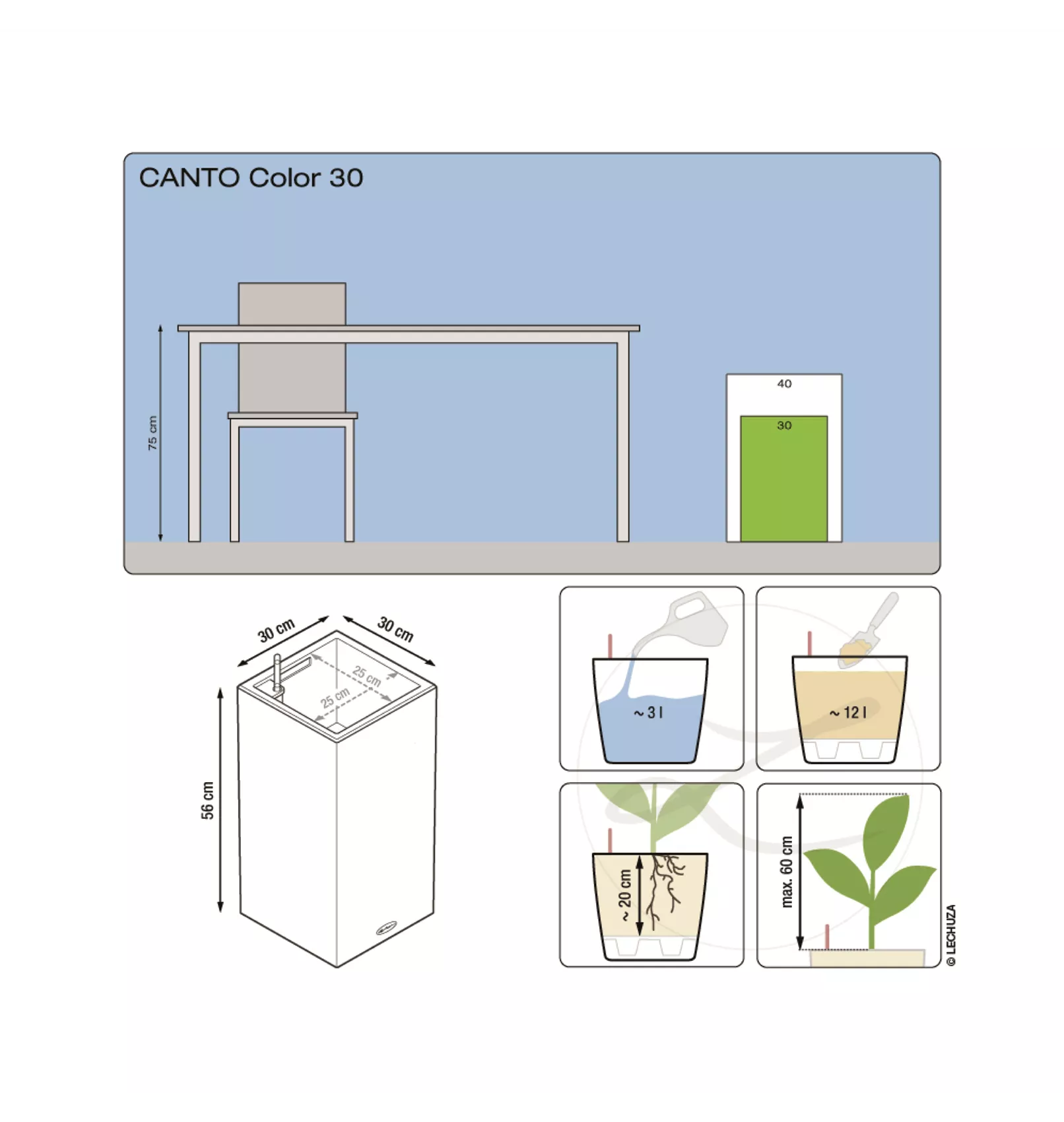 LECHUZA CANTO Stone 30 high | LECHUZA CUBE Cottage 30 | LECHUZA CUBICO Premium 30 | LECHUZA TRIO Cottage 30 | |