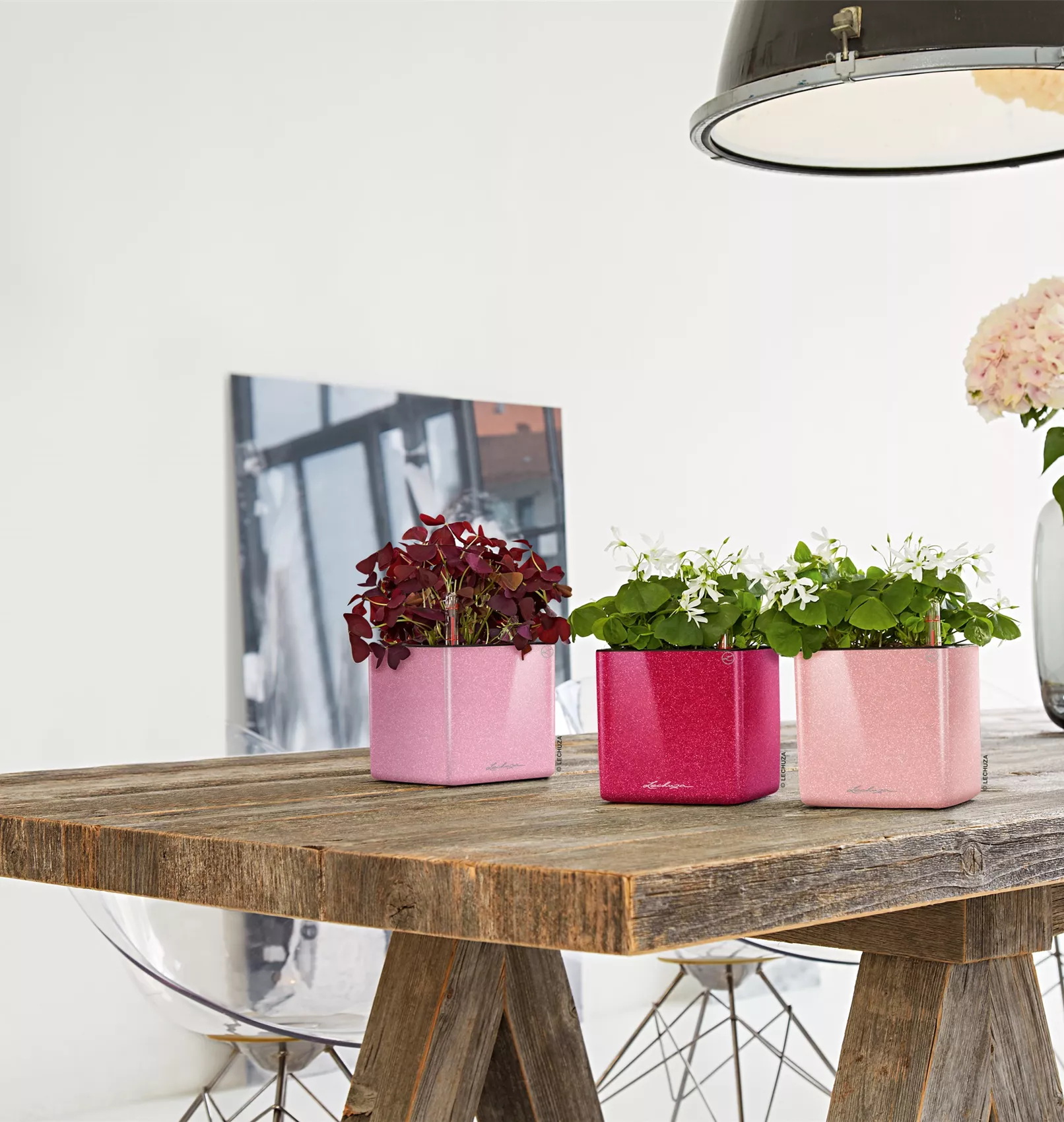 Mit der Glossy-Collection von LECHUZA zieht moderner Glamour in den Wohnbereich ein. Die Pflanzgefäße mit hochwertiger Lackoberfläche sind glänzende Eyecatcher und verleihen Räumen einen eleganten Touch. Dabei sehen die Trendsetter nicht nur edel aus, sondern überzeugen auch durch ihr integriertes Bewässerungssystem, das sich zuverlässig um die Versorgung der Pflanzen kümmert.