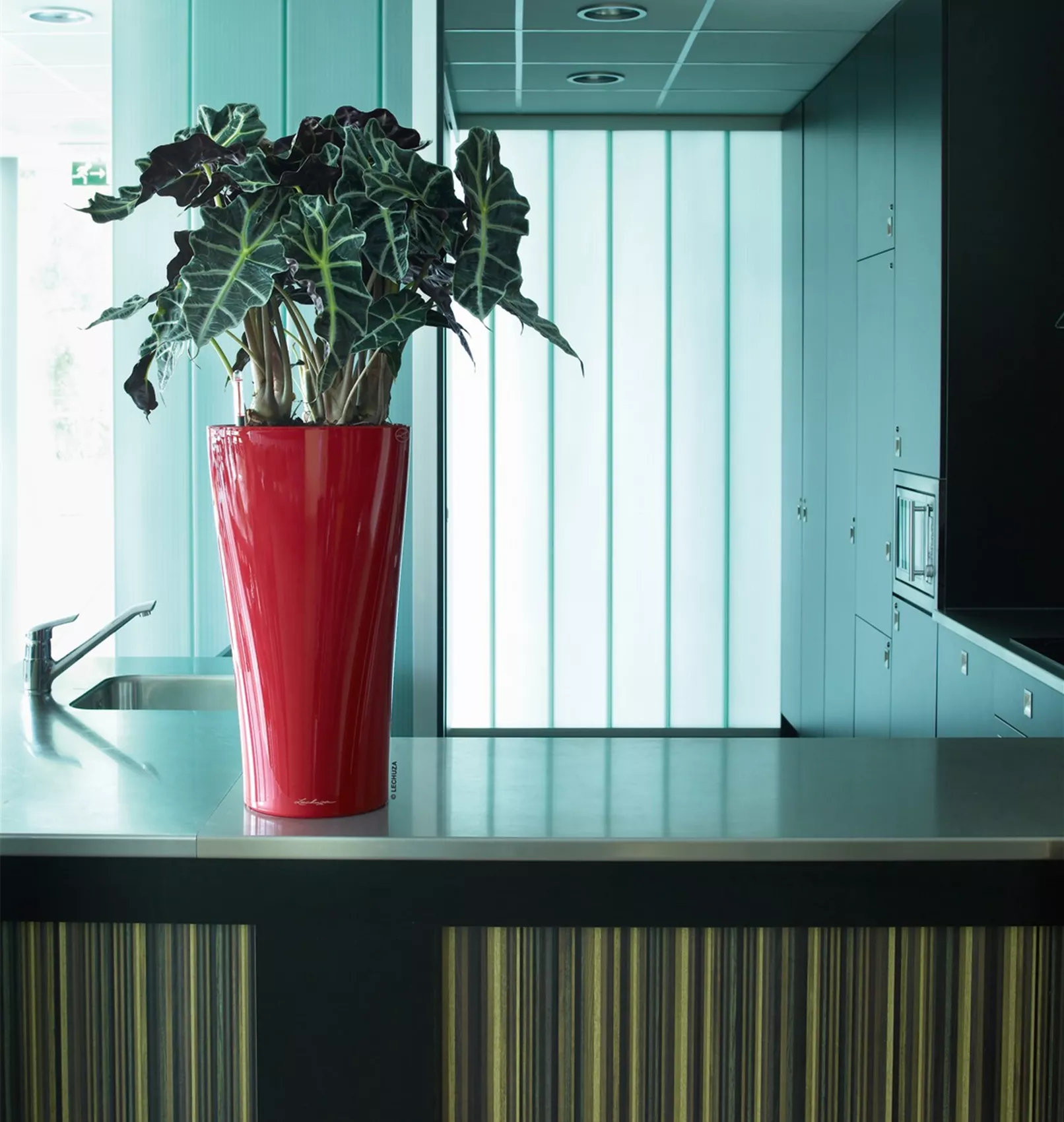 Das schmale Pflanzgefäß DELTA setzt mit der außergewöhnlichen Form hohe Grünpflanzen oder zarte Orchideen elegant und eindrucksvoll in Szene. Die runde Säulenform schließt oben in einem elegant geschwungenen Dreieck ab und setzt so aufmerksamkeitsstarke Akzente. Ob im Wohnzimmer, im Büro oder in öffentlichen Räumen – DELTA 30 und 40 bieten in drei Farbtönen einen außergewöhnlichen Rahmen für Bepflanzungen jeglicher Art. Der Pflanzeinsatz mit dem Griffrahmen in der Gefäßfarbe ermöglicht ein einfaches Wechseln der Bepflanzung und das integrierte Original LECHUZA-Bewässerungssystem versorgt die Pflanzen optimal.