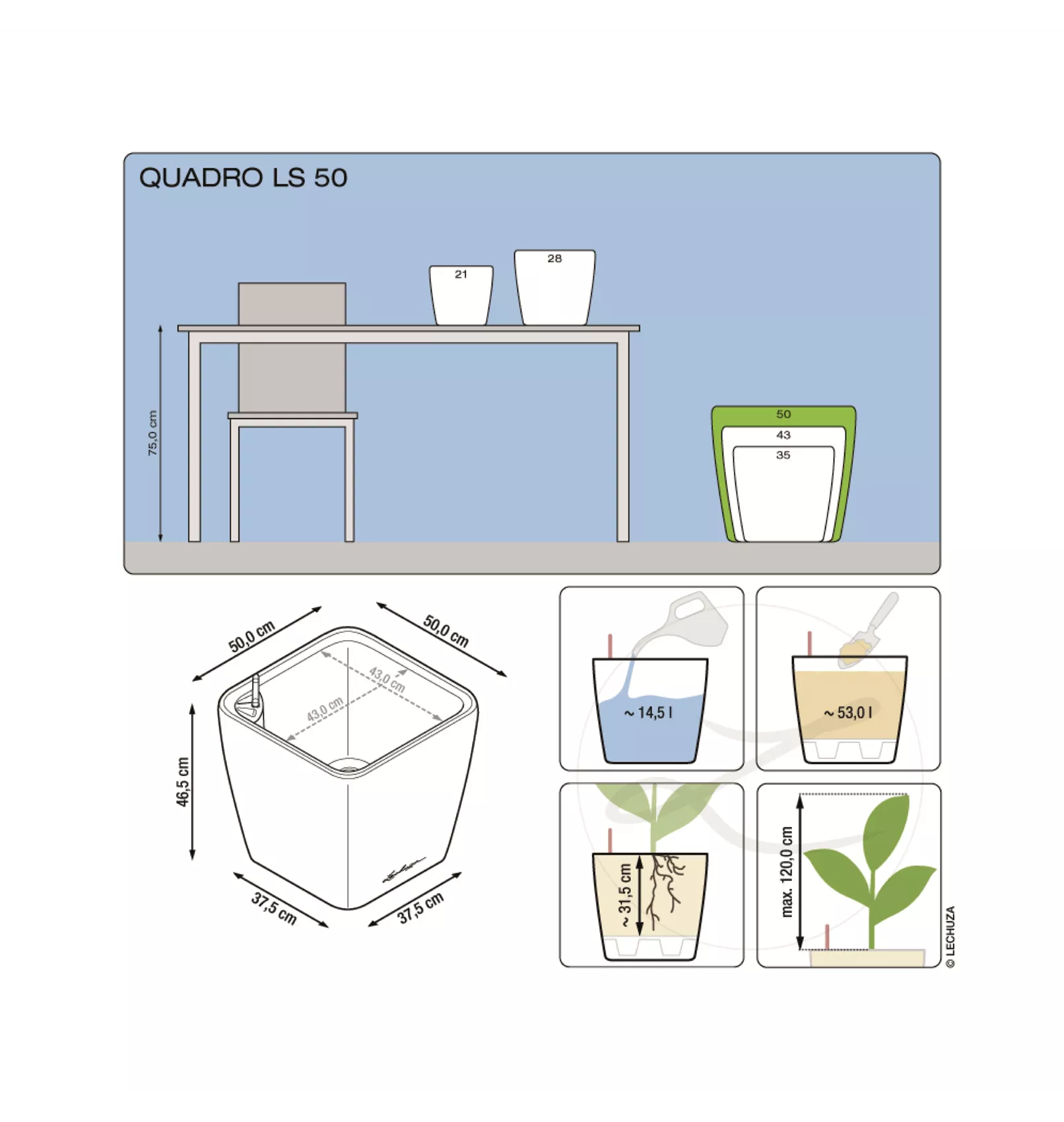 LECHUZA QUADRO Premium LS 50