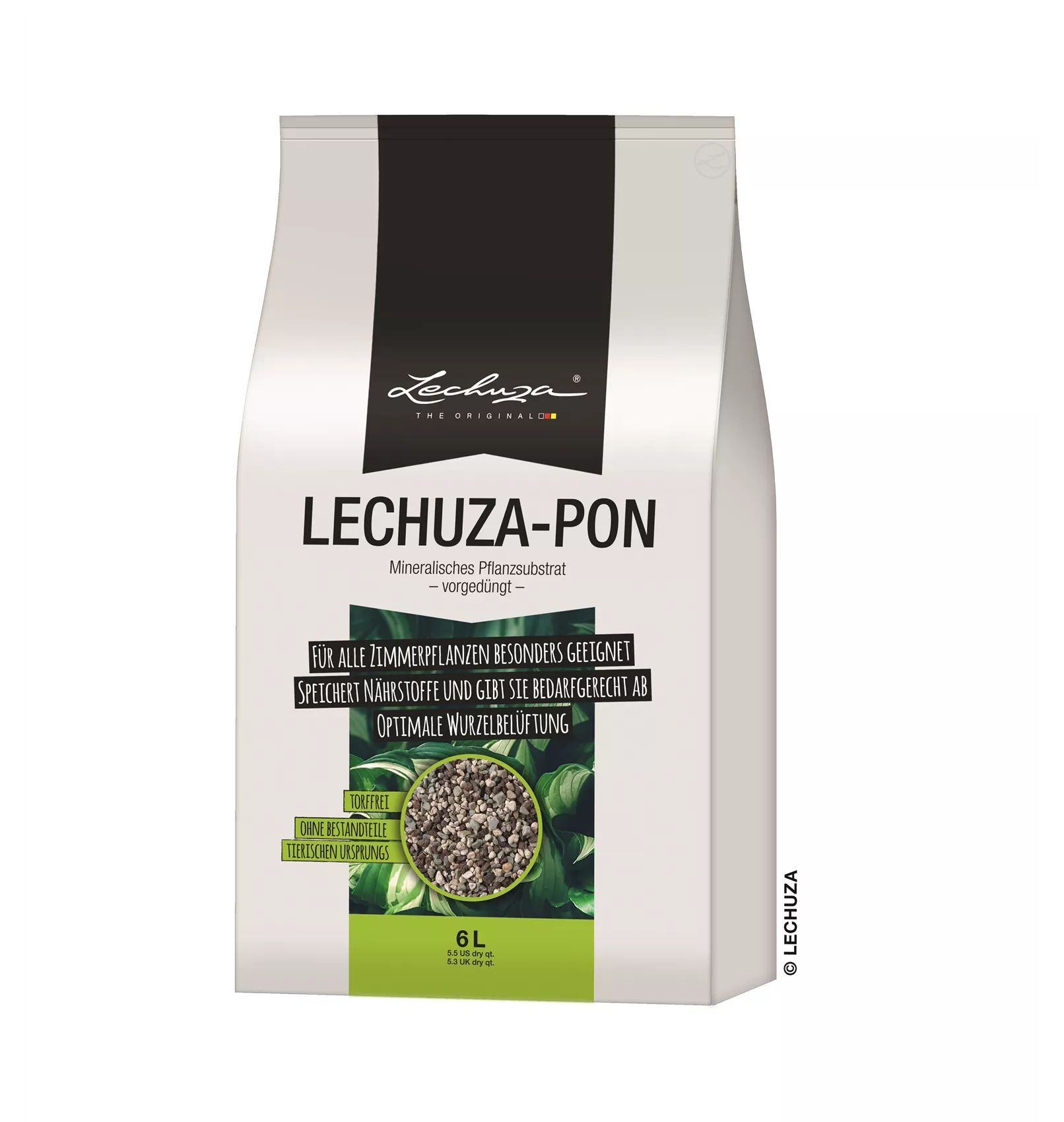 LECHUZA-PON besitzt ein für Pflanzen optimales Luft-Wasser-Verhältnis (45% Wasser - 55% Luft). Die Anfälligkeit für Krankheiten wird hierdurch gemindert. Auch nach Jahren verdichtet sich das strukturstabile Pflanzsubstrat nicht und behält seine luftdurchlässige Struktur. LECHUZA-PON muss auch nach Jahren NICHT ausgetauscht werden!